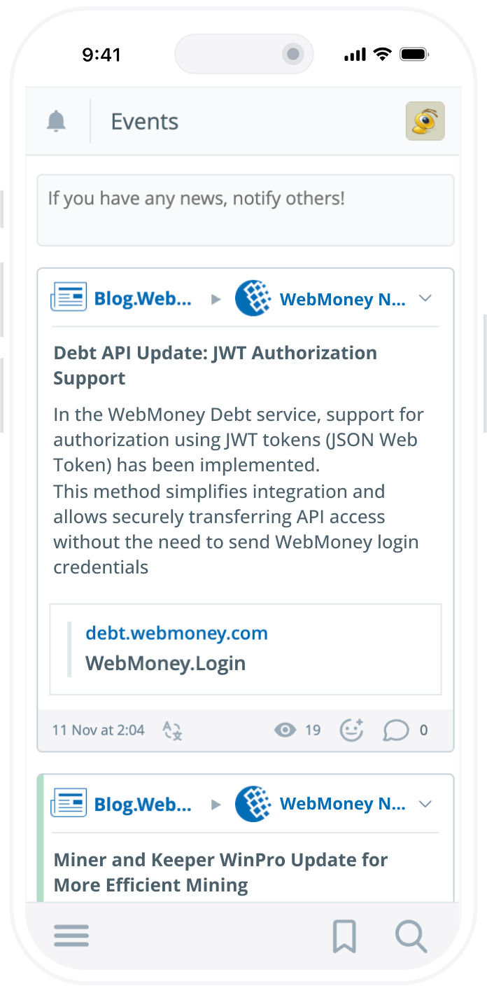 Acesso rápido e gerenciamento da sua carteira WebMoney de qualquer lugar.